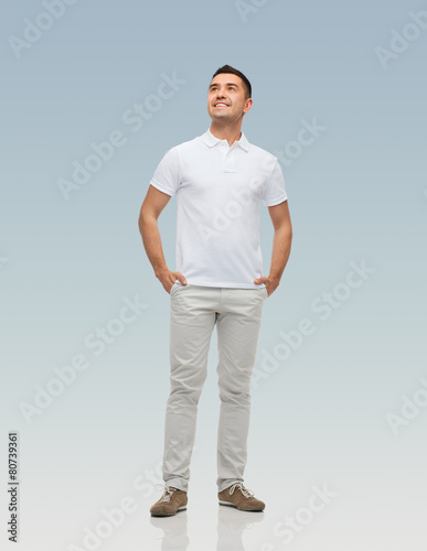 Fototapeta premium smiling man with hands in pockets looking up