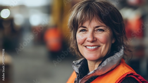 Fototapeta premium Smiling mature woman in orange safety vest.