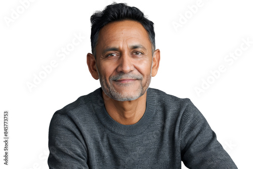 © Asier, Obraz premium Smiling mid-age Indian man using a laptop.