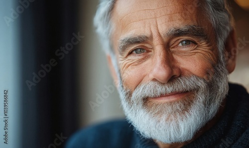 © FrameFlow, Fototapeta premium Smiling old man with a beard, Generative AI