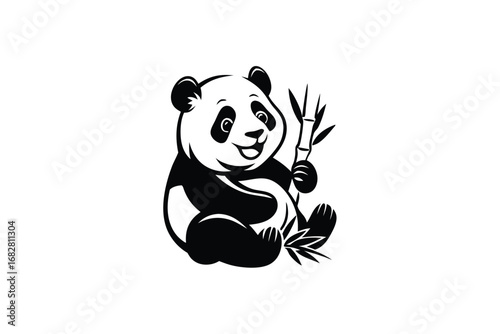 Fototapeta premium Smiling Panda Holding Bamboo Stem, Cute Animal Mascot Cartoon on White Background
