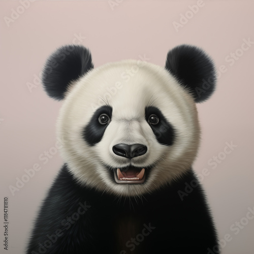 © Adam, Naklejka premium Smiling Panda Oil Painting, White Background