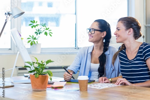 © WavebreakmediaMicro, Obraz premium Smiling partners working together on computer and digitizer