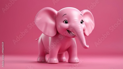 © Saad, Naklejka premium Smiling pink elephant on vibrant pink background