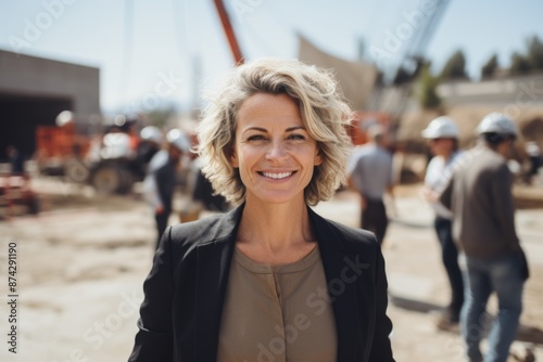 Fototapeta premium Smiling portrait of a mature businesswoman on construction site