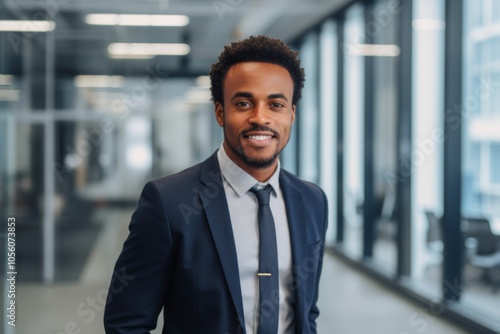© NikoG, Naklejka premium Smiling portrait of a young African American businessman in office