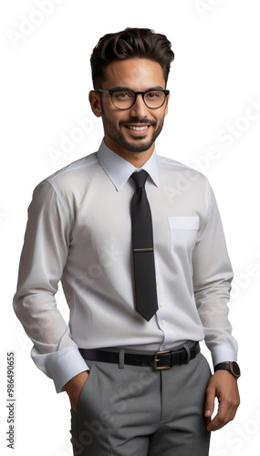 © weerayut, Fototapeta premium Smiling professional man in white shirt and black tie
