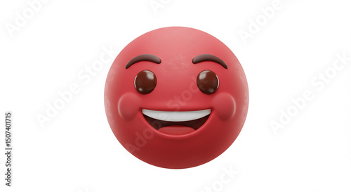 Fototapeta premium Smiling red emoji with happy expression on white background