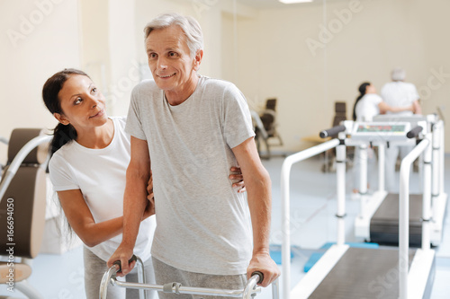 Obraz premium Smiling retirement going to have training