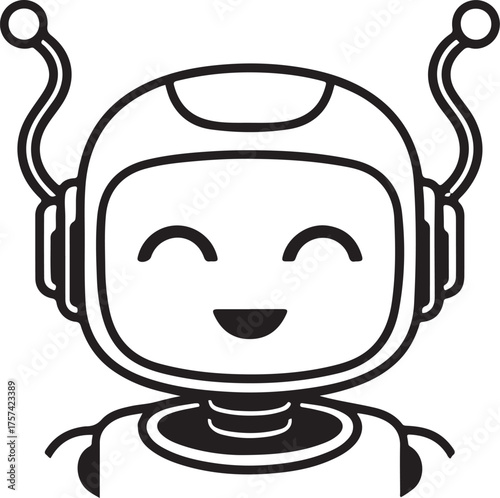 Fototapeta premium Smiling robot head with antenna isolated on white background for technology...