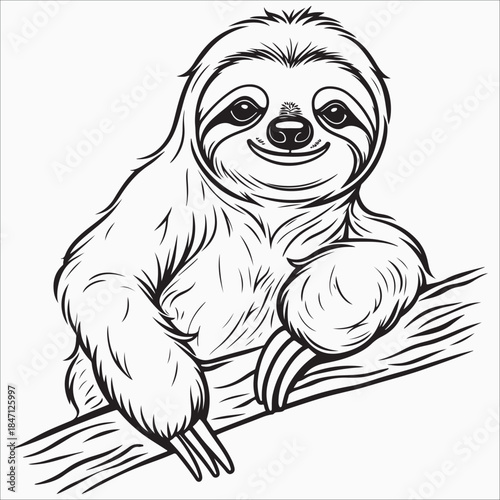© richard, Obraz premium Smiling sloth on a branch silhouette vector illustration