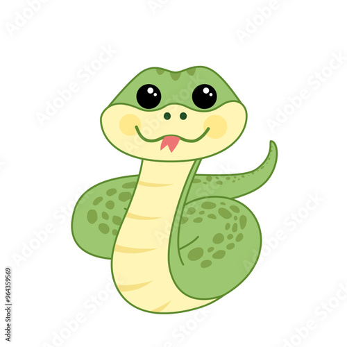 © Aleksandra, Naklejka premium Smiling snake with tongue hanging out. Cute snake. Cartoon, vector.