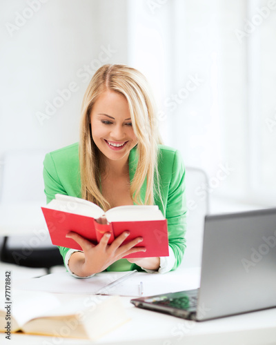 © Syda Productions, Fototapeta premium smiling student girl reading book in college
