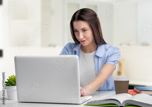 © BillionPhotos.com, Fototapeta premium Smiling student woman study with books at home interior