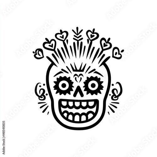 Fototapeta premium Smiling, stylized skull design with decorative elements.