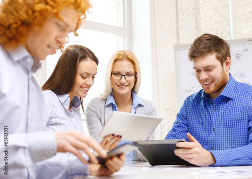 © Syda Productions, Fototapeta premium smiling team with table pc and papers working