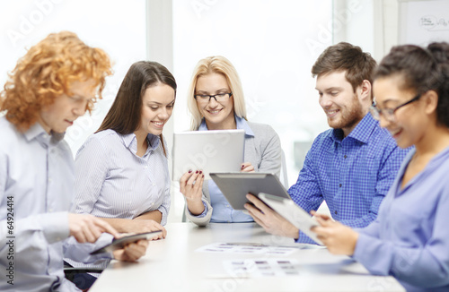 © Syda Productions, Fototapeta premium smiling team with table pc and papers working