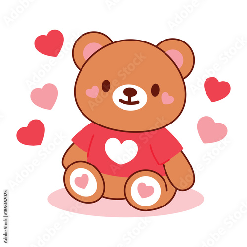 © Vector Bazar, Fototapeta premium Smiling Teddy Bear with Heart Valentine Artwork