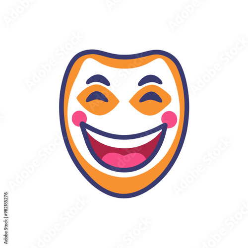 Fototapeta premium Smiling theater mask in orange and white colors with happy expression on a...