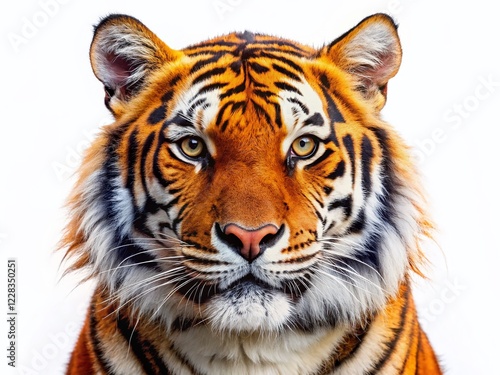 © Four888, Fototapeta premium Smiling Tiger Head Clipart: Isolated Orange Big Cat Illustration for Designs