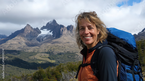 © Kim, Naklejka premium Smiling woman hiker Patagonia