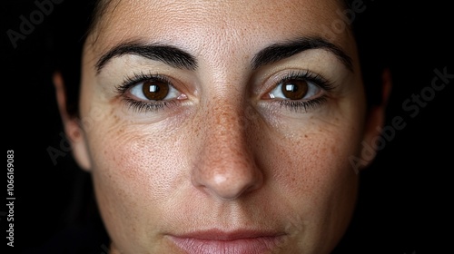 Obraz premium Smiling Woman in Soft Diffused Lighting Close-Up