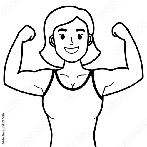 © Oghibli Art Studio, Obraz premium smiling-woman-show-muscles-feeling-powerful