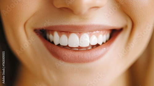 Fototapeta premium Smiling woman showcasing bright teeth and joyful expression reflecting...