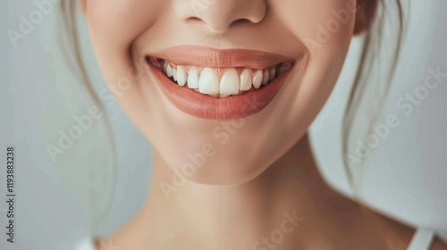 © buraratn, Obraz premium Smiling woman with healthy teeth, showcasing bright smile and confidence. Her joyful expression radiates happiness and positivity, perfect for dental or beauty themes