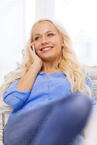 © Syda Productions, Fototapeta premium smiling woman with smartphone at home
