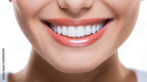 © hakule, Obraz premium Smiling woman with white teeth, close-up of teeth on face