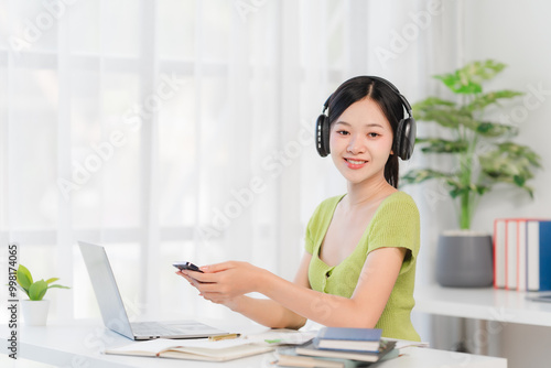 © Wicitr, Obraz premium Smiling Woman Working From Home