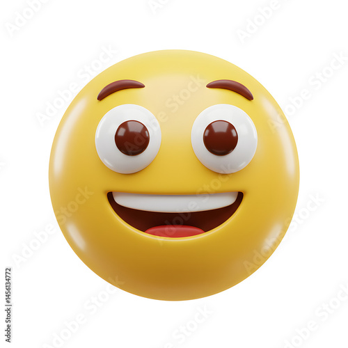 © Aksapix Studio, Fototapeta premium Smiling Yellow 3D Emoji with Brown Eyes on Transparent Background
