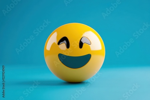 © rak, Fototapeta premium Smiling Yellow Emoji on Blue Background