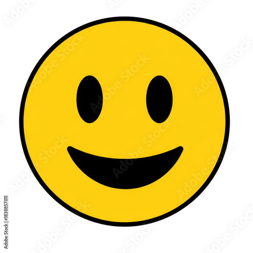 © PNG world, Fototapeta premium Smiling yellow emoticon face with black background and curved mouth expression