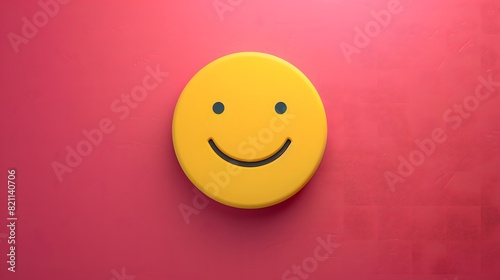 © TAMA KUN, Fototapeta premium Smiling yellow emoticon on red background.