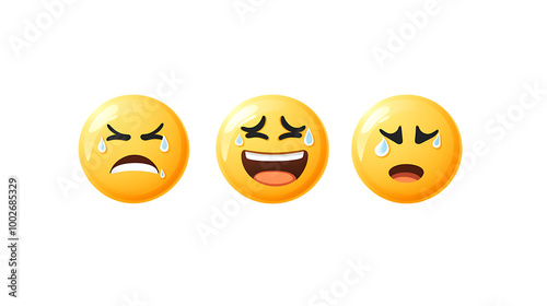 © Rama, Fototapeta premium Smiling yellow faces with happy expressions, 3D emoticons set