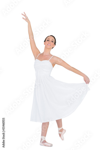 Naklejka premium Smiling young ballet dancer posing with her leg back