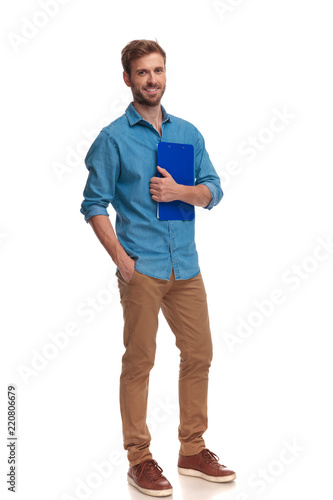 © Viorel Sima, Fototapeta premium smiling young casual student holding clipboard