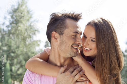 © MDBPIXS, Fototapeta premium Smiling young couple looking at each other in park