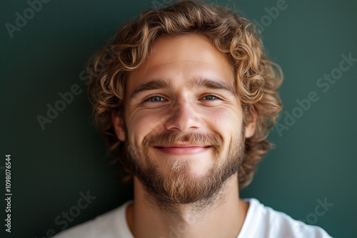 © song, Fototapeta premium Smiling Young Male Portrait on Solid Background
