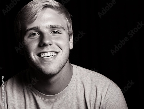 Fototapeta premium Smiling Young Man Portrait Black and White Photo