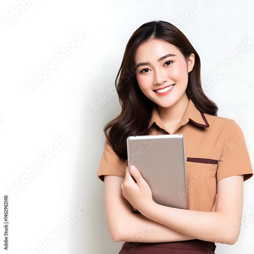 © NaiGraphic, Fototapeta premium Smiling Young Woman Holding Tablet in Casual Office Environment