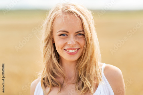 © Syda Productions, Fototapeta premium smiling young woman in white on cereal field