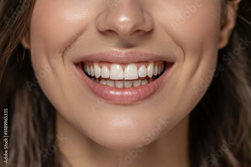 Obraz premium Smiling young woman with flawless teeth and natural beauty, showcasing...