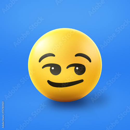 © Tarek, Fototapeta premium Smirking suggestively Emoji stress ball on shiny floor. 3D emoticon isolated.