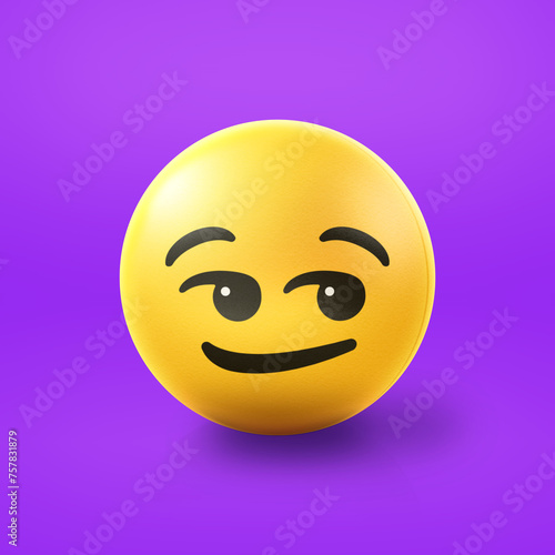 © Tarek, Fototapeta premium Smirking suggestively Emoji stress ball on shiny floor. 3D emoticon isolated.