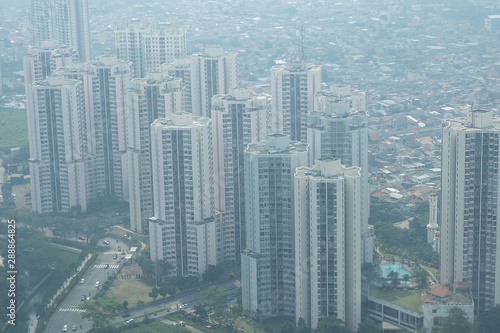 Obraz premium Smog dust air pollution in city of Jakarta, Indonesia