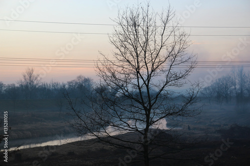 © Bogdan, Fototapeta premium Smog in the valley and a tree in front