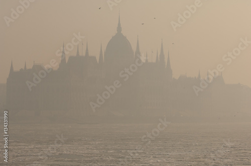 Naklejka premium Smog settled over Budapest